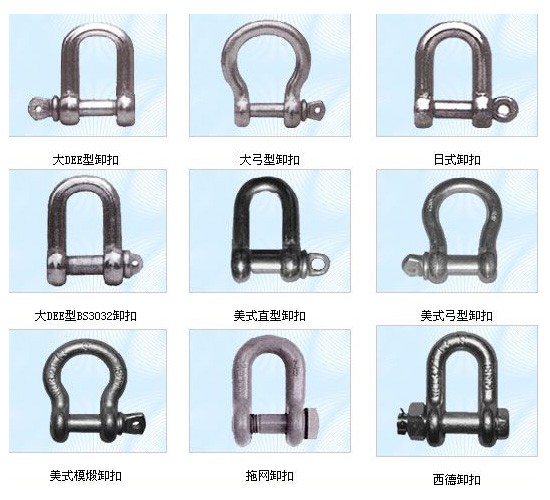 3、按型式分:弓型、弓型带母卸扣、D型、D型带母卸扣