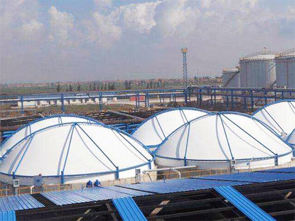 防腐效果强。由于膜结构建筑结构的特殊性,可将钢架架设在外面,只有膜材部分接触初沉池,基本解决了腐蚀问题,而且将来也不用考虑维护问题。
