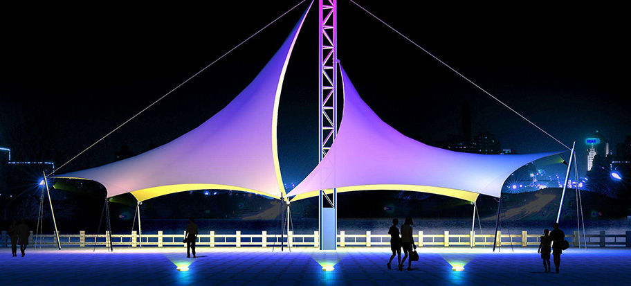 对太阳热能可反射掉70%,膜材本身吸收了17%,传热13%,而透光率却在20%以上,经过10年的太阳光直接照射,其辉度仍能保留70%。公司致力于客户享受到本公司的设计独特、结构新颖、造型优雅的膜结构精品工程。